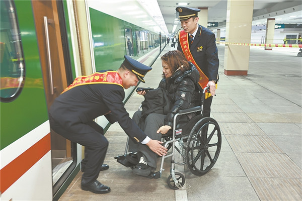 “雷鋒出差一千里,好事做了一火車”。如今,這句話在D1/2次“雷鋒號(hào)”列車上依舊每天上演。旅途中,“雷鋒”的身影隨處可見。推輪椅、修行李箱、送一杯熱茶……“學(xué)雷鋒服務(wù)小分隊(duì)”的列車乘務(wù)人員身披綬帶、熱情周到,以實(shí)際行動(dòng)踐行雷鋒精神。印著雷鋒頭像的“雷鋒包”是他們的標(biāo)配,里面裝著針線盒、老花鏡、服務(wù)卡、愛心貼、地圖等小物件,在旅客急需時(shí)派上大用場(chǎng)。